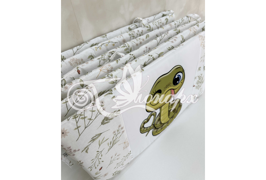 Бортики СО СЪЕМНЫМИ ЧЕХЛАМИ в кроватку: защитят Вашего малыша от ушибов, сквозняков, солнечных лучей и не дадут малышу запутаться в прутьях кроватки. - Простыня на резинке 60х120 см (подходит для стандартной кроватки)