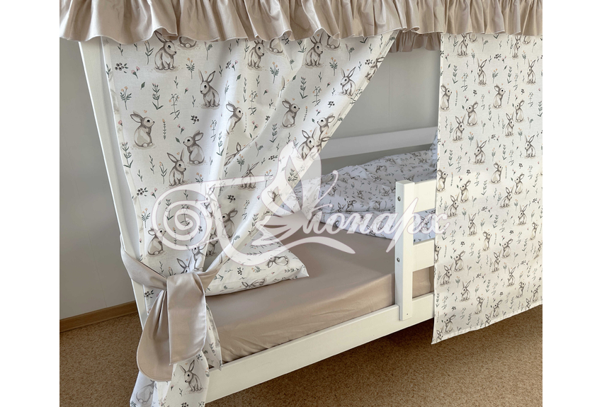 Крыша и шторы для кроватки домика ТД-28 купить в Астрахани.Теги: комплект в кроватку домик, текстиль для домика, крыша для домика