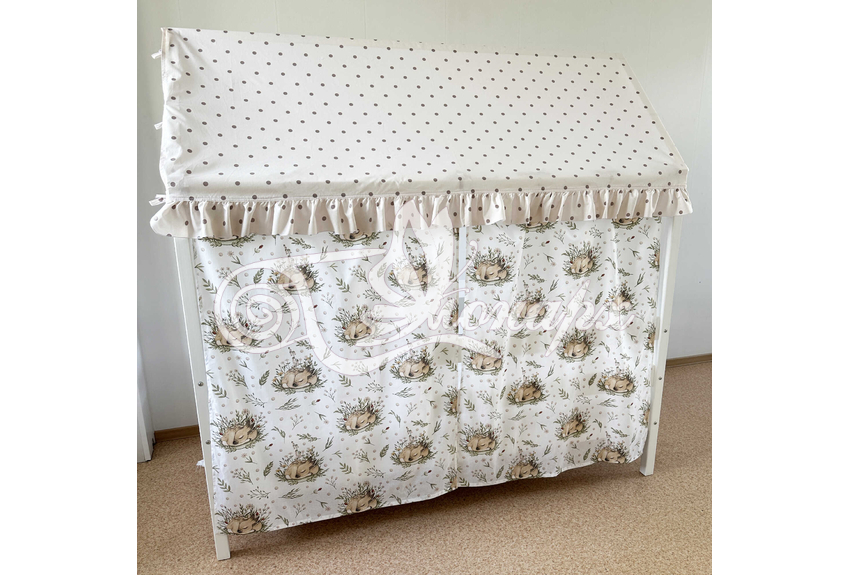 Крыша и шторы для кроватки домика ТД-42 купить в Астрахани.Теги: комплект в кроватку домик, текстиль для домика, крыша для домика